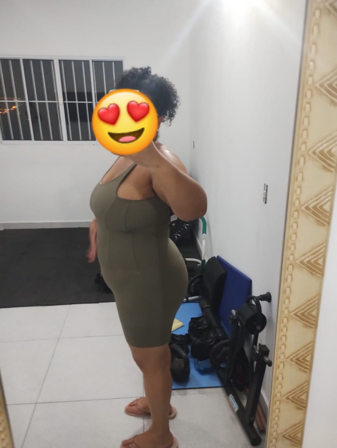 Com espaço para bojo e um recorte em V no bumbum, o macacão substitui discretamente o tradicional empina bumbum