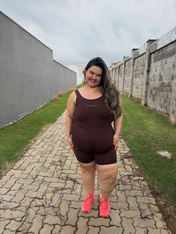 O modelo conta com um decote em U elegante, alças mais larguinhas e costas abertas, que promovem ventilação e adicionam um toque de estilo. A costura dupla no abdômen cria o efeito chapa barriga