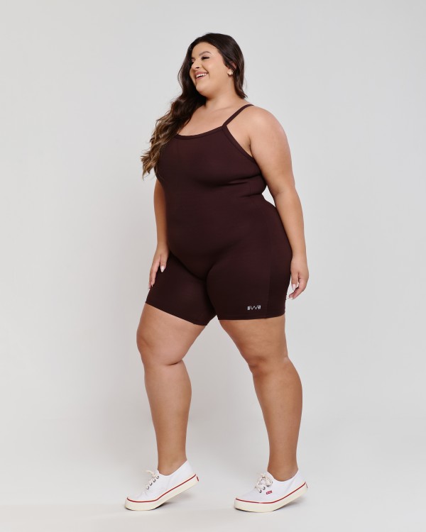 Macaquinho curto com alças finas, modelagem justa e sem costura na frente ou no bumbum para máximo conforto e caimento perfeito.