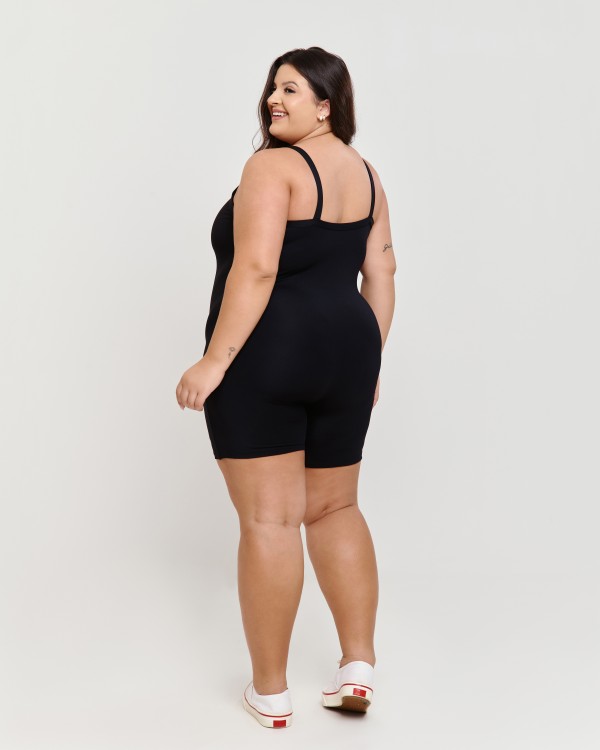 Macaquinho curto com alças finas, modelagem justa e sem costura na frente ou no bumbum para máximo conforto e caimento perfeito.