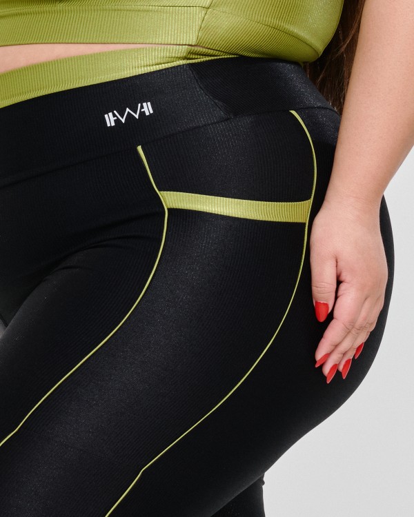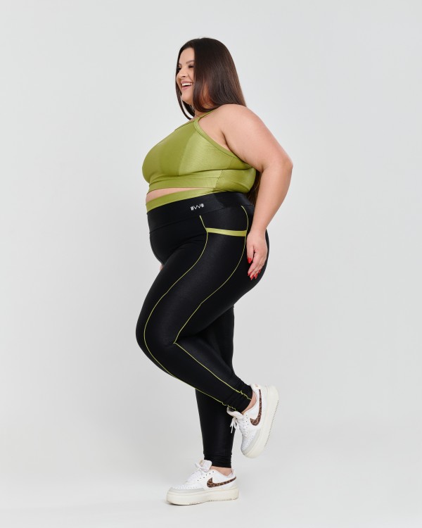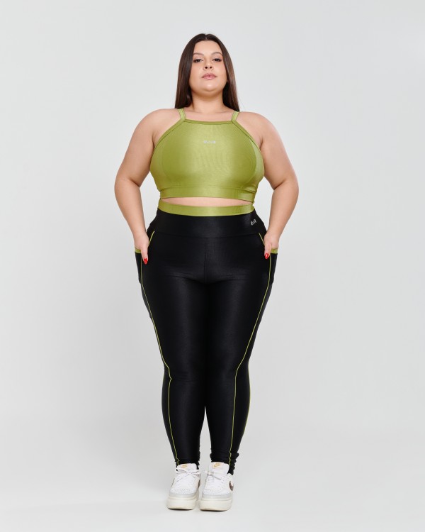 Calça Canelada Recorte V Plus Size Verde Enseada