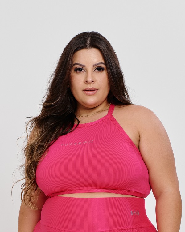 • Top Canelado Halter Neck Plus Size Hot Pink