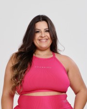 O Top Canelado Halter Neck, é confeccionado em tecido de poliamida zero transparência microcanelado, com um elegante efeito glossy acetinado. Este modelo apresenta uma frente única com um logo minimalista, bojo removível e gola fechada, além de costas abertas em design triangular, que trazem um toque moderno ao visual. O fechamento por colchetes metálicos proporciona um ajuste seguro e confortável.