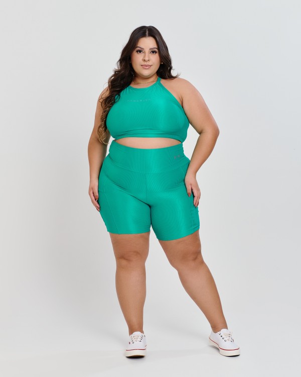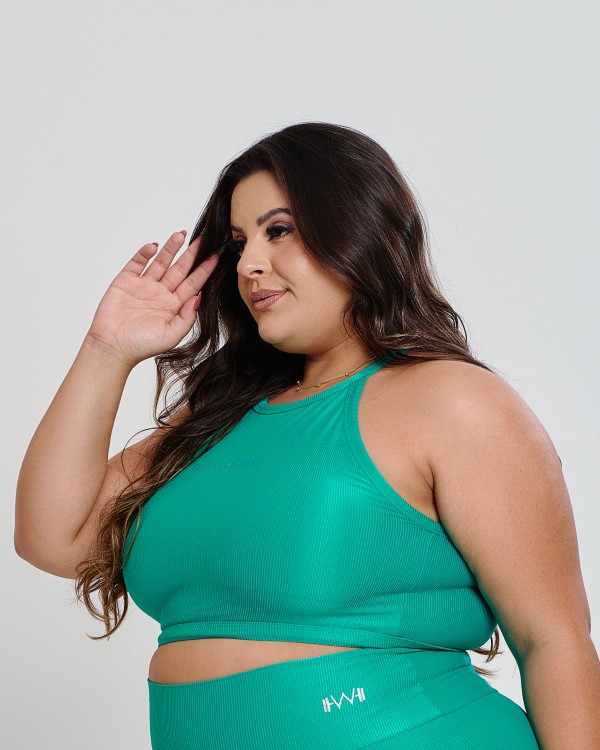 • Top Canelado Halter Neck Plus Size Verde Enseada
