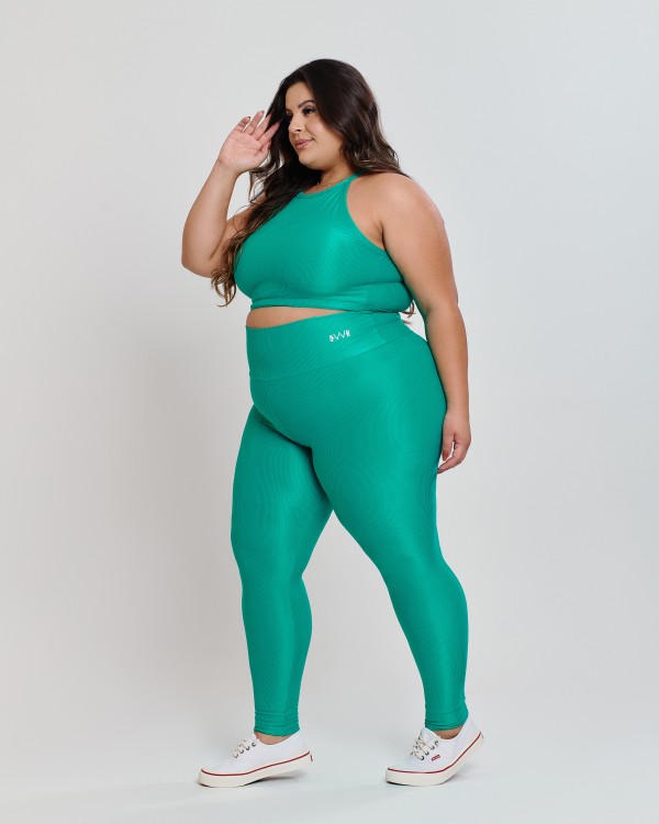 • Calça Canelada Recorte V Plus Size Verde Enseada