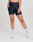 O modelo meia coxa apresenta bolsos laterais práticos, cintura alta e cós duplo, além de um recorte em V no bumbum que valoriza suas curvas de forma elegante, substituindo o empina bumbum tradicional. O logo minimalista completa o visual com um detalhe sutil e moderno.