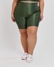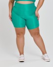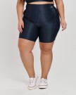 O modelo meia coxa apresenta bolsos laterais práticos, cintura alta e cós duplo, além de um recorte em V no bumbum que valoriza suas curvas de forma elegante, substituindo o empina bumbum tradicional. O logo minimalista completa o visual com um detalhe sutil e moderno.