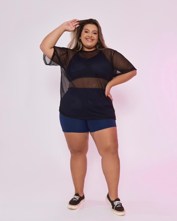 Blusão Power Oversized de Tule Plus Size Rosa