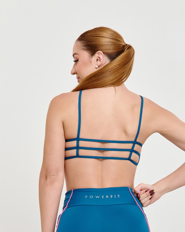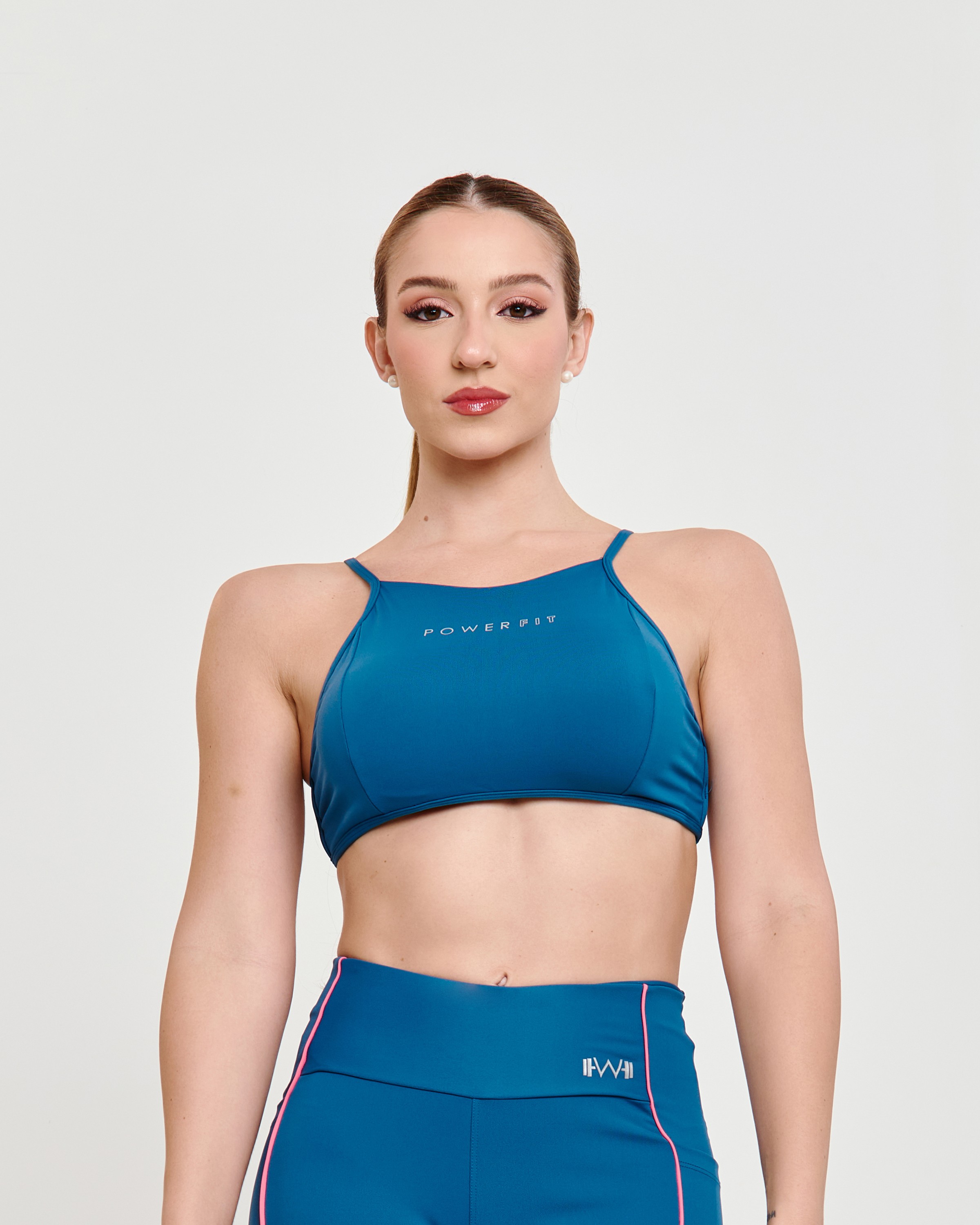 O Top Detalhe em Tiras combina estilo e performance. Feito em poliamida, possui decote em U, alças finas e tiras horizontais nas costas que garantem visual moderno e sustentação para treinos de alto impacto. A estampa Power Fit em silk metalizado traz exclusividade e personalidade à peça.