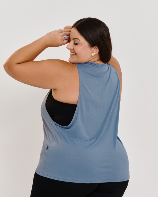 Regata Cavada em Dry Fit: Confeccionada em tecido leve e respirável, com toque fresco e proteção UV. O design com costas nadador e laterais mais abertas garante liberdade total de movimento para acompanhar sua rotina de treinos.