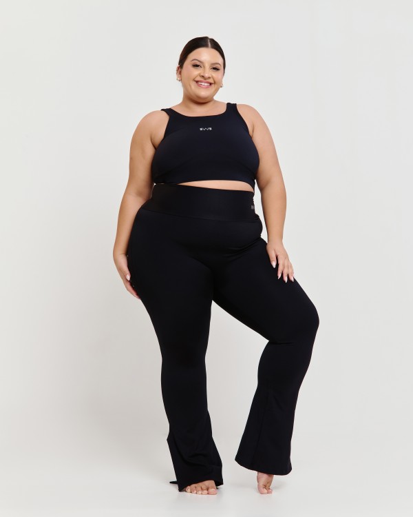 • Calça Flare com Fenda Lateral Plus Size Preto