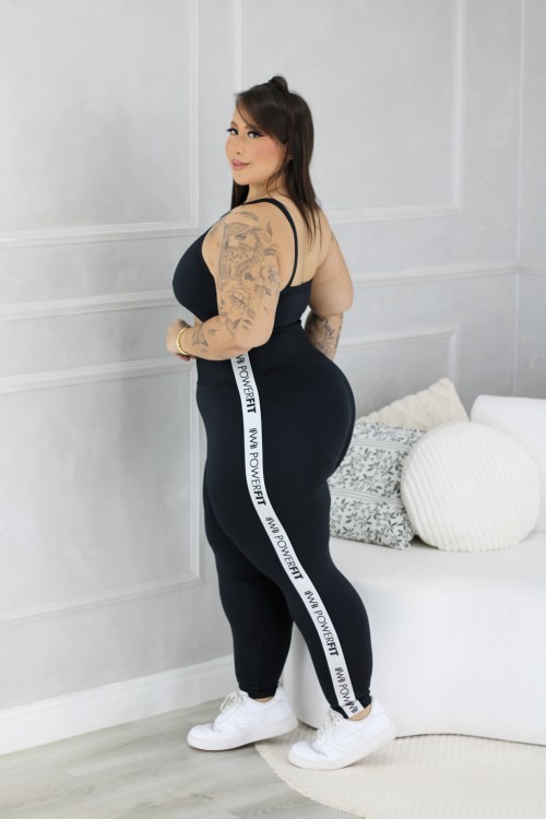 • Calça Power Fit Plus Size Preto com Prata