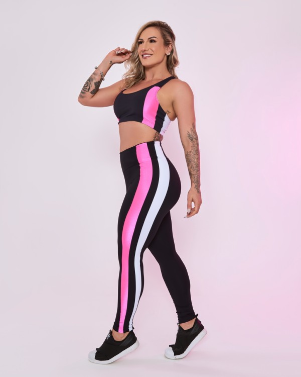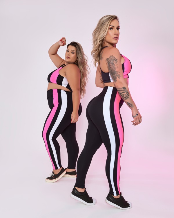 Com faixas laterais que realçam suas curvas, essa legging une estilo e personalidade. Feita em tecido macio de alta compressão, garante conforto, elasticidade na medida e modelagem impecável. Possui cós alto, não dá bolinhas, é fácil de lavar e não precisa passar — perfeita para treinos ou para o dia a dia.