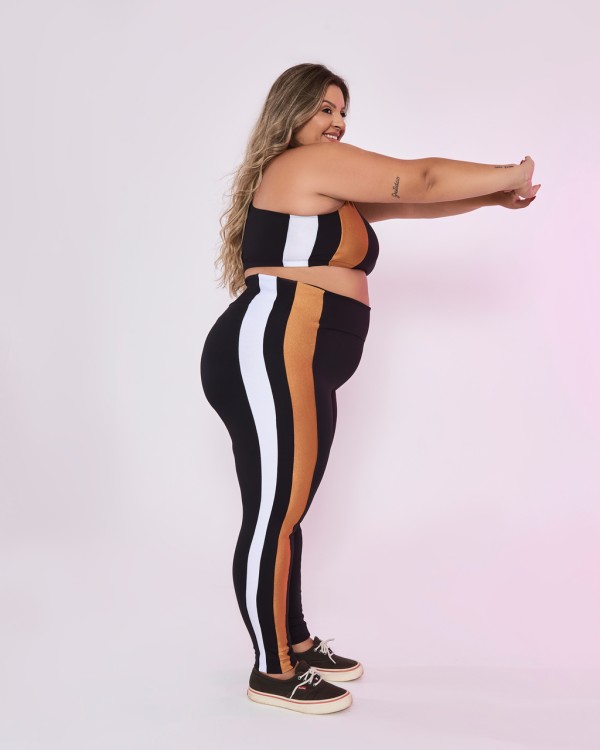 Com faixas laterais que realçam suas curvas, essa legging une estilo e personalidade. Feita em tecido macio de alta compressão, garante conforto, elasticidade na medida e modelagem impecável. Possui cós alto, não dá bolinhas, é fácil de lavar e não precisa passar — perfeita para treinos ou para o dia a dia.