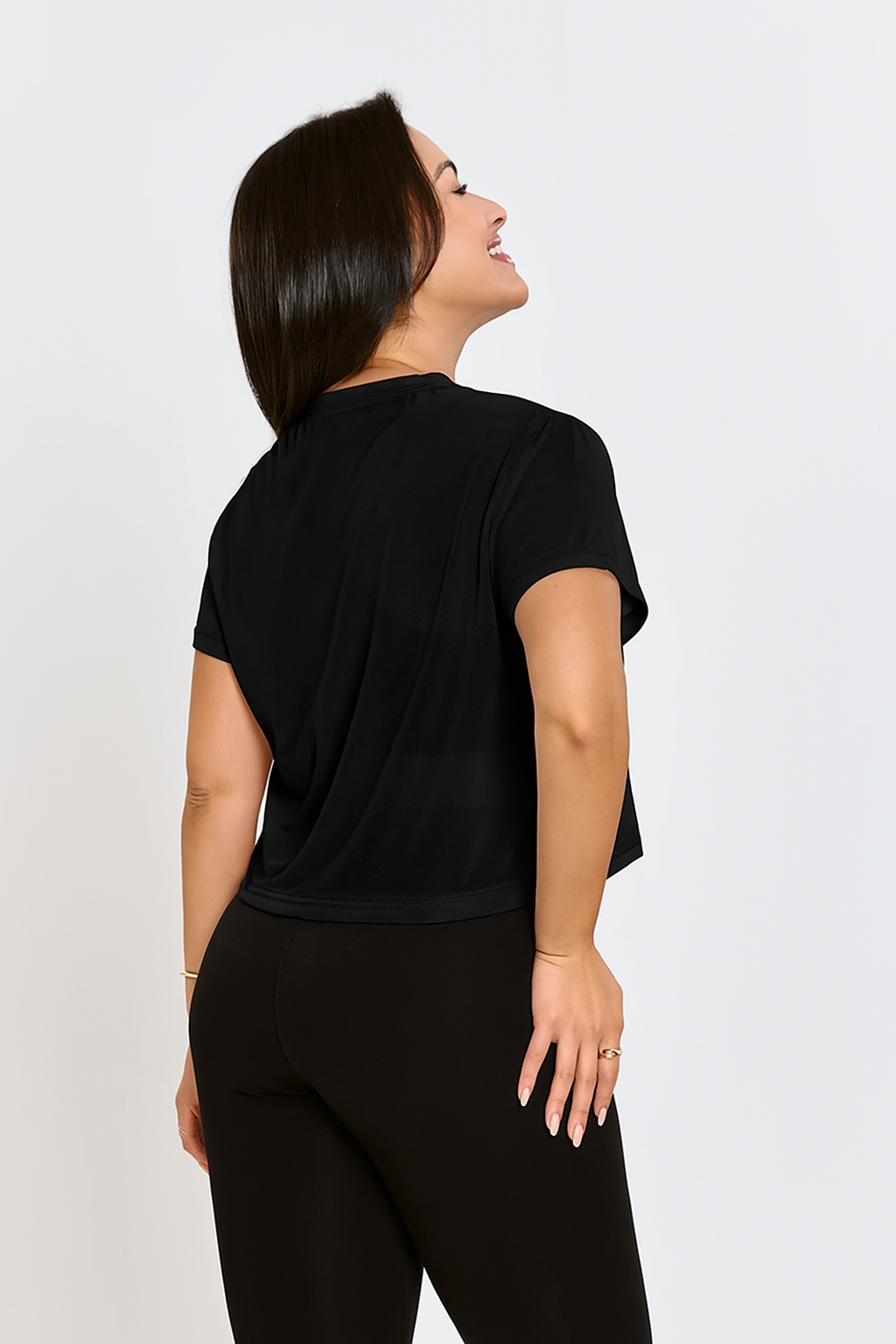 Com gola redonda e confeccionada em tecido leve, confortável e de toque suave, essa peça foi pensada para ser o verdadeiro coringa do seu guarda-roupa fitness. Feita em tule de poliamida em cor sólida, combina facilmente com qualquer look de treino. Perfeita para aqueles dias em que você não quer malhar apenas de top, a camiseta cropped traz uma modelagem mais soltinha, garantindo liberdade total de movimento e muito estilo durante sua rotina de exercícios.