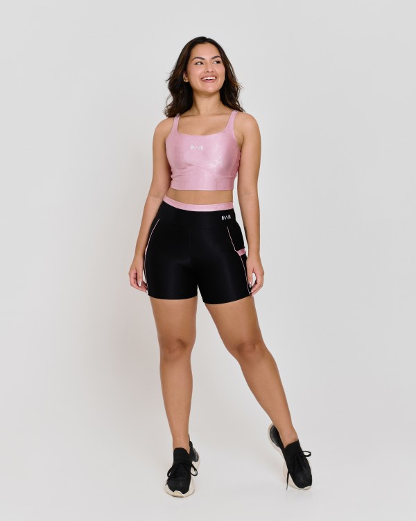 é confeccionada em tecido poliamida microcanelado com efeito cintilante, de compressão média, na cor preta, é um modelo nada básico contando com recortes em um tom de rosa (rose gold) no cós e bolsos laterais que acrescentam vida e modernidade à peça. Conta ainda com proteção UV50+, e detalhes verticais em vivo que alongam visualmente a silhueta. Sua modelagem anatômica e tecido tecnológico proporcionam ajuste perfeito ao corpo e conforto sem igual. Use na academia, atividades ao ar livre, em suas corridas, no crossfit ou em qualquer outro momento da sua vida que peça conforto e praticidade.