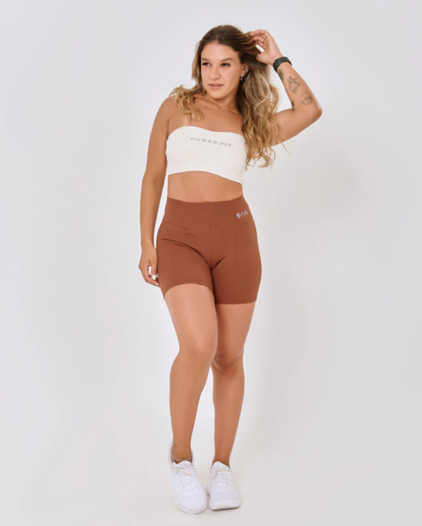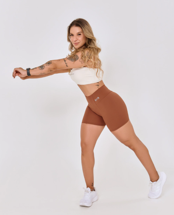 Com cintura alta, oferece maior suporte e segurança durante os movimentos. Os recortes frontais no estilo montaria adicionam sofisticação ao visual, enquanto o recorte em V acima do bumbum cria o efeito empina de forma sutil e eficaz — sem a costura tradicional do levanta bumbum.