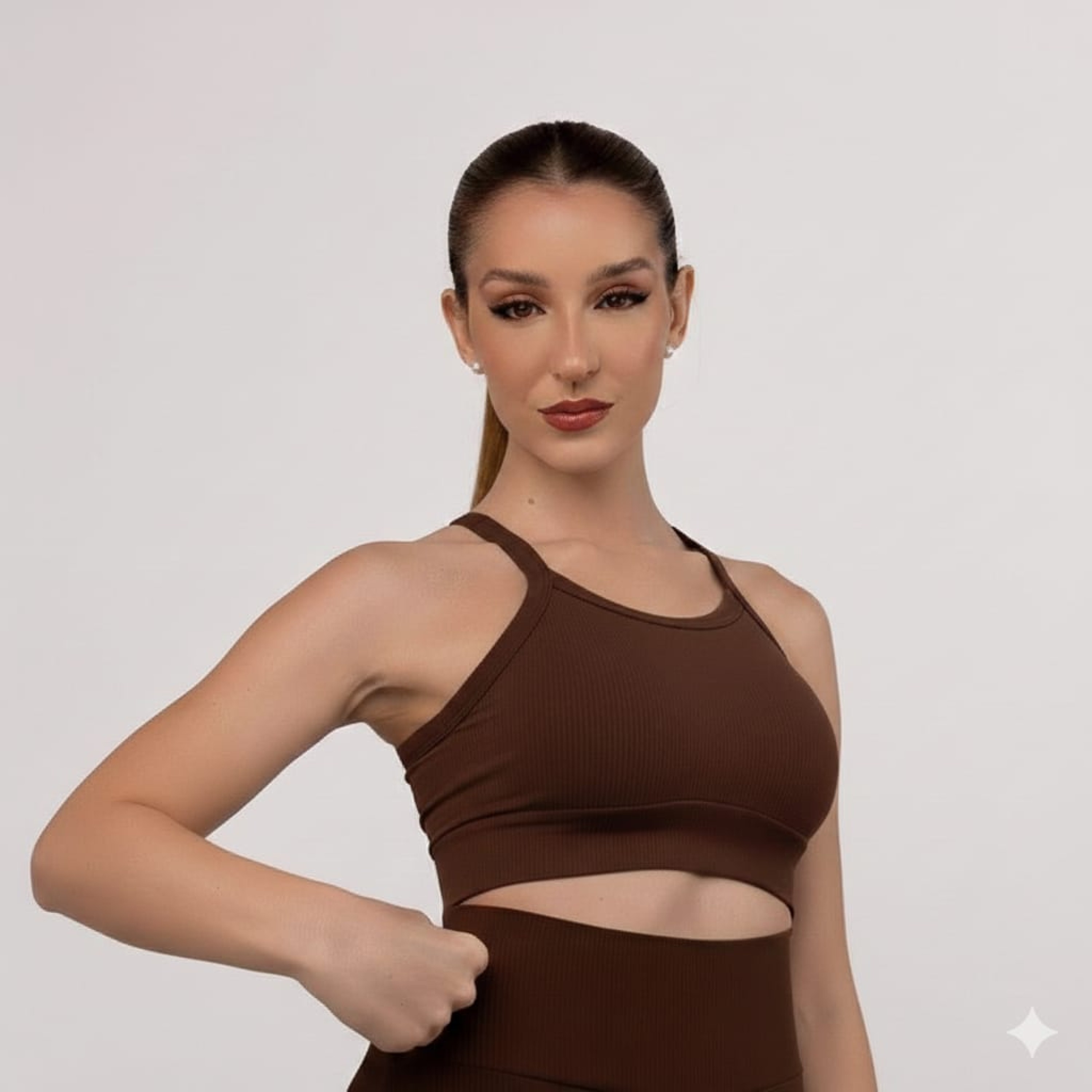 Top com alças finas, visual moderno e super estiloso. Nas costas, o detalhe cruzado anatômico garante sustentação, segurança e aquele charme extra que faz toda a diferença. A modelagem confortável veste perfeitamente, valoriza o busto sem apertar e acompanha todos os seus movimentos. Confeccionado em tecido canelado comzero transparência, oferece firmeza e confiança do treino ao look casual. O logo discreto finaliza a peça com identidade e um toque fashion.