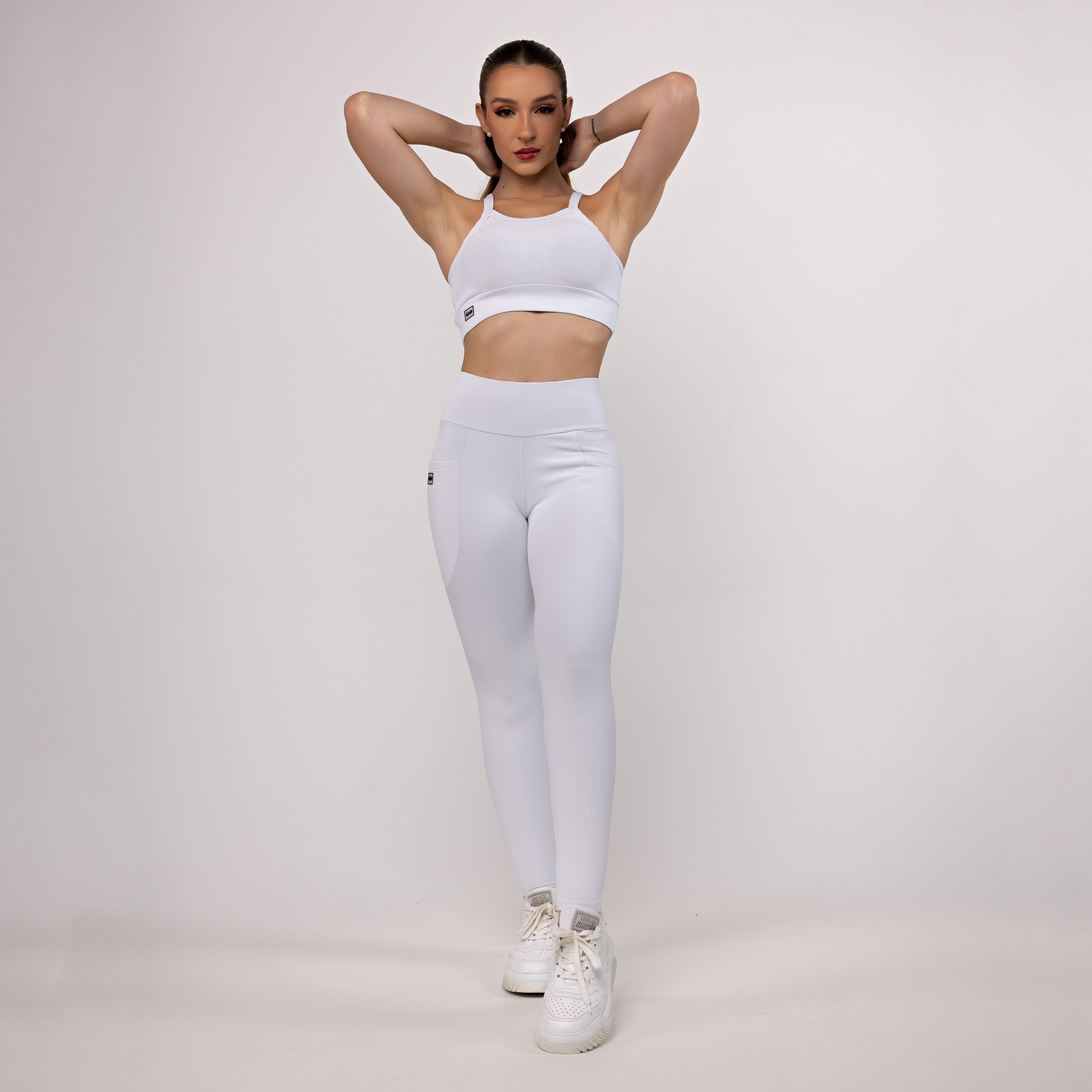 Essa legging foi feita pra quem quer sustentação, conforto real e caimento impecável em qualquer corpo. O tecido canelado premium é firme, macio e zero transparência — garante segurança até nos treinos mais puxados. O cós alto estruturado modela a cintura sem apertar e dá aquele efeito “segura tudo” que a gente ama. A compressão é confortável e se adapta direitinho ao corpo.