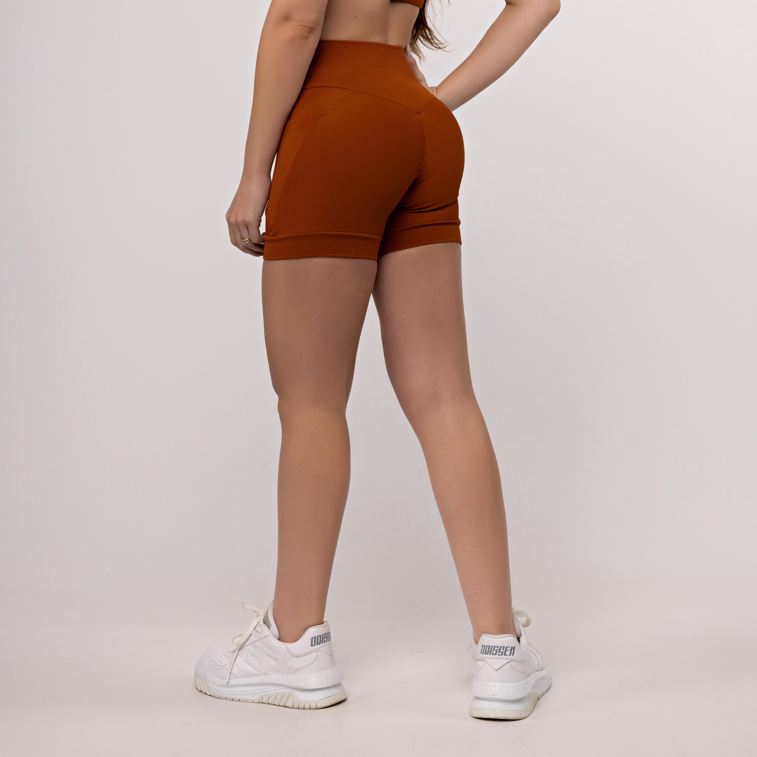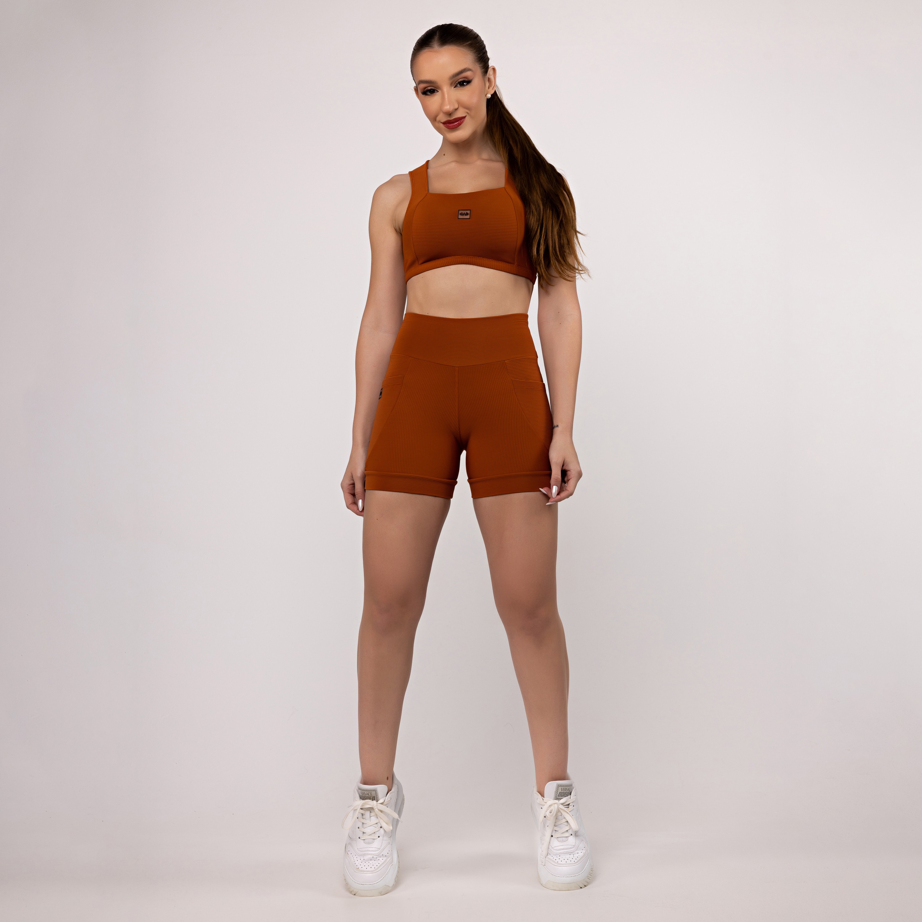 O bolso lateral funcionalé aquele detalhe prático que faz toda a diferença, ideal para levar o celular ou pequenos itens sem perder o estilo. Confeccionado em tecido canelado comzero transparência, garante total segurança, firmeza e um caimento impecável. O logo discreto finaliza a peça com charme e identidade.