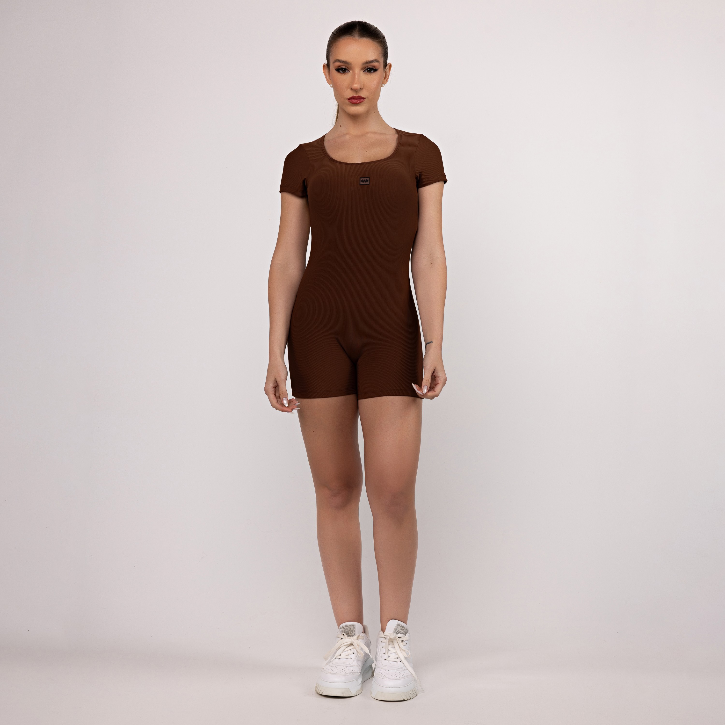 O modelo conta com manguinhas que abraçam o braço e deixam o visual ainda mais lindo e confortável. O recorte nas costas é aquele detalhe que faz toda a diferença, valorizando o corpo de um jeito moderno e feminino. Feito emtecido canelado zero transparência, traz segurança total e um caimento impecável.