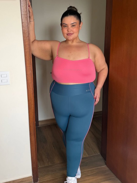 Legging fitness de cintura alta, com detalhes em costura contrastante ao longo das pernas e na lateral do cós. Possui bolso lateral funcional. Modelagem ajustada ao corpo, alongando a silhueta, ideal para treinos ou looks casuais. Confeccionada em tecido elástico, confortável e de toque macio, garantindo liberdade de movimento.