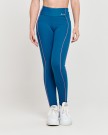 Legging fitness de cintura alta, com detalhes em costura contrastante ao longo das pernas e na lateral do cós. Possui bolso lateral funcional. Modelagem ajustada ao corpo, alongando a silhueta, ideal para treinos ou looks casuais. Confeccionada em tecido elástico, confortável e de toque macio, garantindo liberdade de movimento.